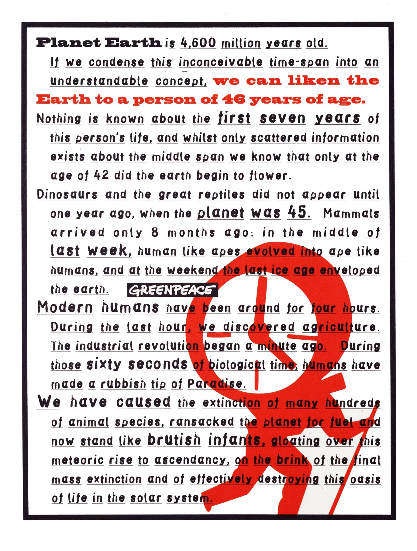 Way before climate change was on the tip of many tongues, someone calls you about a Greenpeace project. It’s actually a piece of writing that inspires and needs to be published to the world. Someone asks, might you turn it into an ad? And by the way they need it today as the Guardian has a free space in tomorrow’s edition. Dam right — you say yes! Dam right — you’ll give it all you’ve got! Dam brave — that Greenpeace never asked to see a layout!