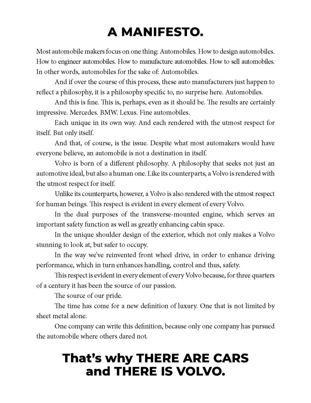 “Cars are driven by people. The guiding principle behind everything we make at Volvo, therefore is and must remain safety” — Assar Gabrielsson & Gustaf Larson. Founders, Volvo Car Corporation. “That is why every Volvo is rendered with the utmost respect for human beings”. At EURO RSCG, Peter was the world wide Head of Art on Volvo.